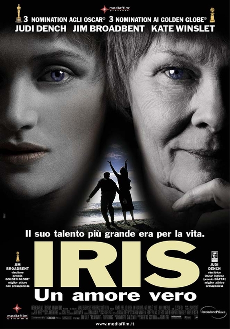 Un altro capolavoro pieno di insegnamenti è il film  “Iris – un amore vero”, interpretato da una strepitosa Judi Dench. Il film narra la vera storia d’amore tra Iris Murdoch (scrittrice contemporanea scomparsa nel 1999) e il suo compagno di vita John Bayley che, peraltro, ha scritto su di lei libri come “Iris and her Friends: a Memoir of Memory and Desire” e “Elegy for Iris”. La trama descrive una vita di coppia trascorsa nella gioia, pur con qualche contrasto, fino a quando, negli anni della vecchiaia, il marito si accorge dei primi sintomi della malattia di Alzheimer della consorte. Un film consigliato per sensibilizzare la cittadinanza sul tema dell’Alzheimer poiché tratta i vari aspetti della malattia considerando tutti i fattori: biologici, psichici, sociali ed esistenziali.